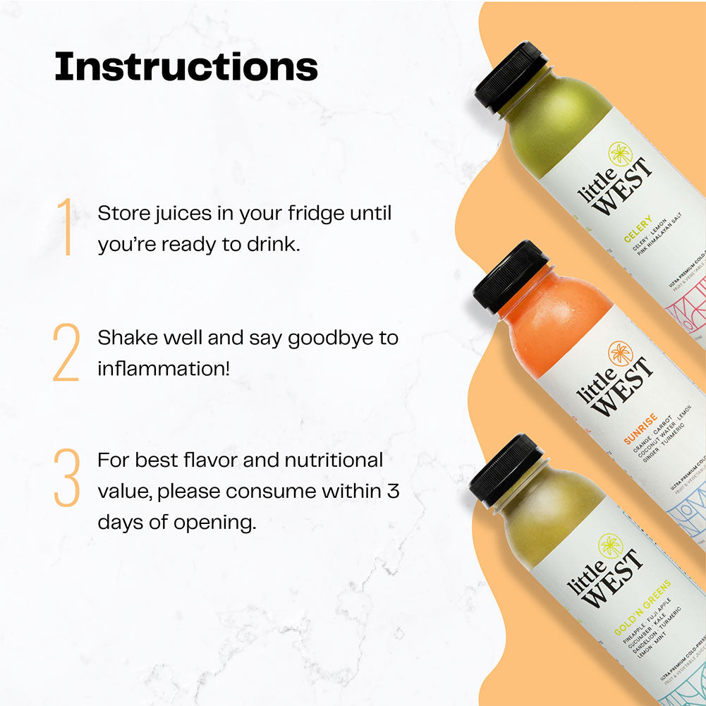 NOT TODAY, INFLAMMATION. Ready to bust the bloat, ditch dull skin, and supercharge your health? Little West’s Anti-Inflammation Kit has 12 cold pressed juices made from raw anti-inflammatory ingredients like kale, ginger, and turmeric. They’re a delicious part of a healthy, anti-inflammation diet.
