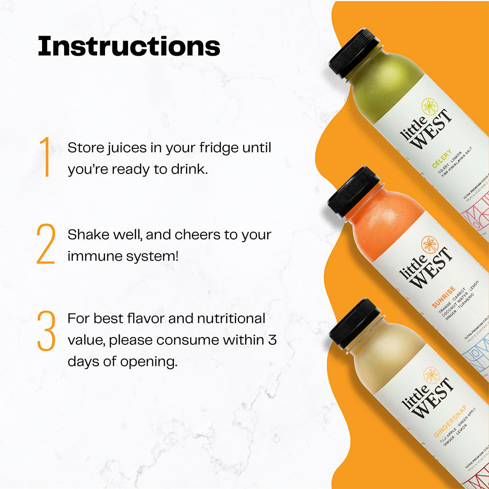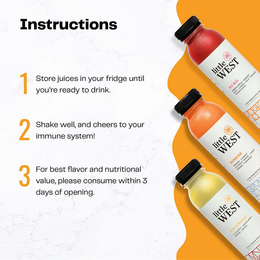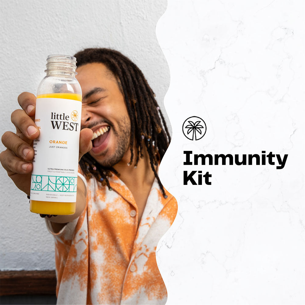 Revitalize Your Immune System with Little West's Immunity Kit. Packed with 2-4 pounds of raw fruits and vegetables in every bottle, it's a vitamin C and antioxidant boost for a healthier you! Cheers to vibrant health!