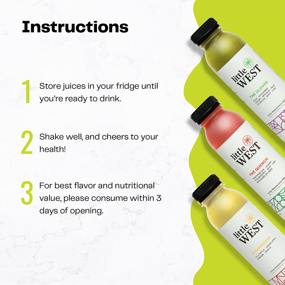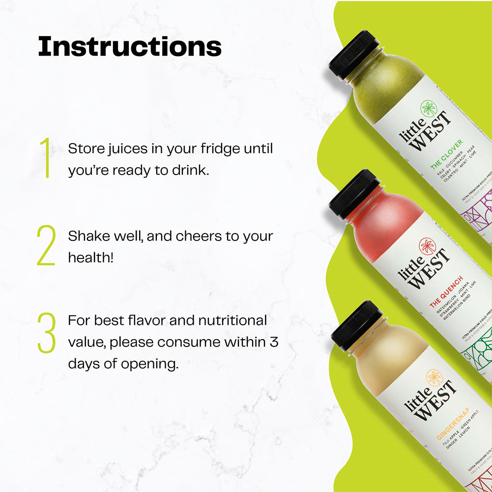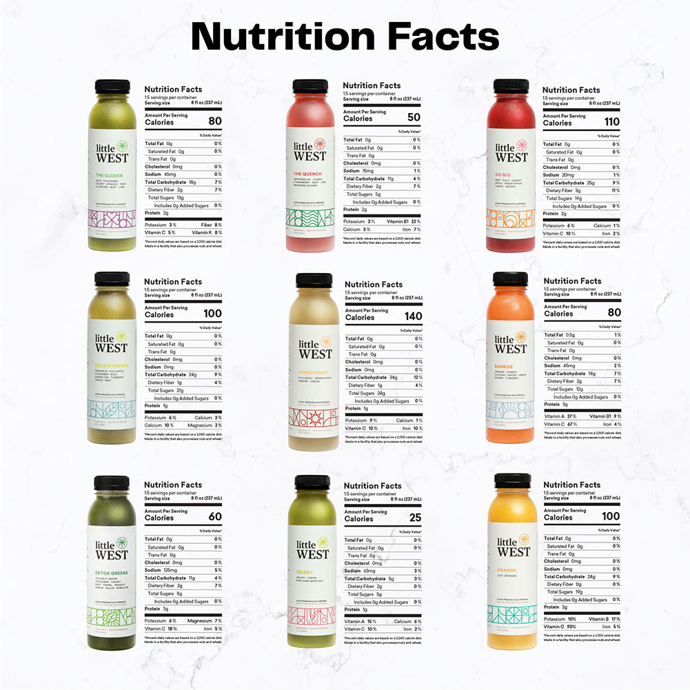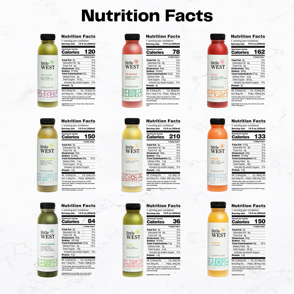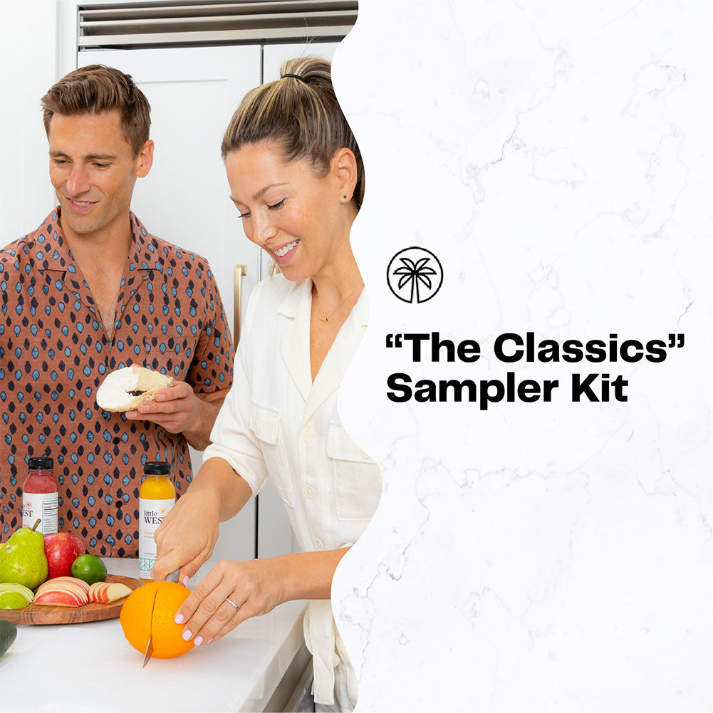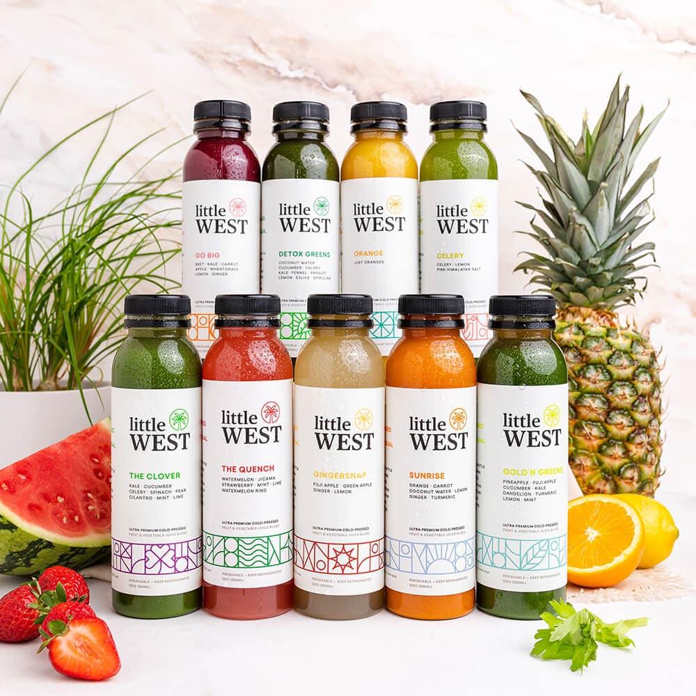 DISCOVER THE DELICIOUS. Searching for your next favorite juice? Try the best of Little West in The Classics Sampler Kit variety pack. Includes 14 cold pressed juices, with 2-4 pounds of raw produce from local farms in every bottle.